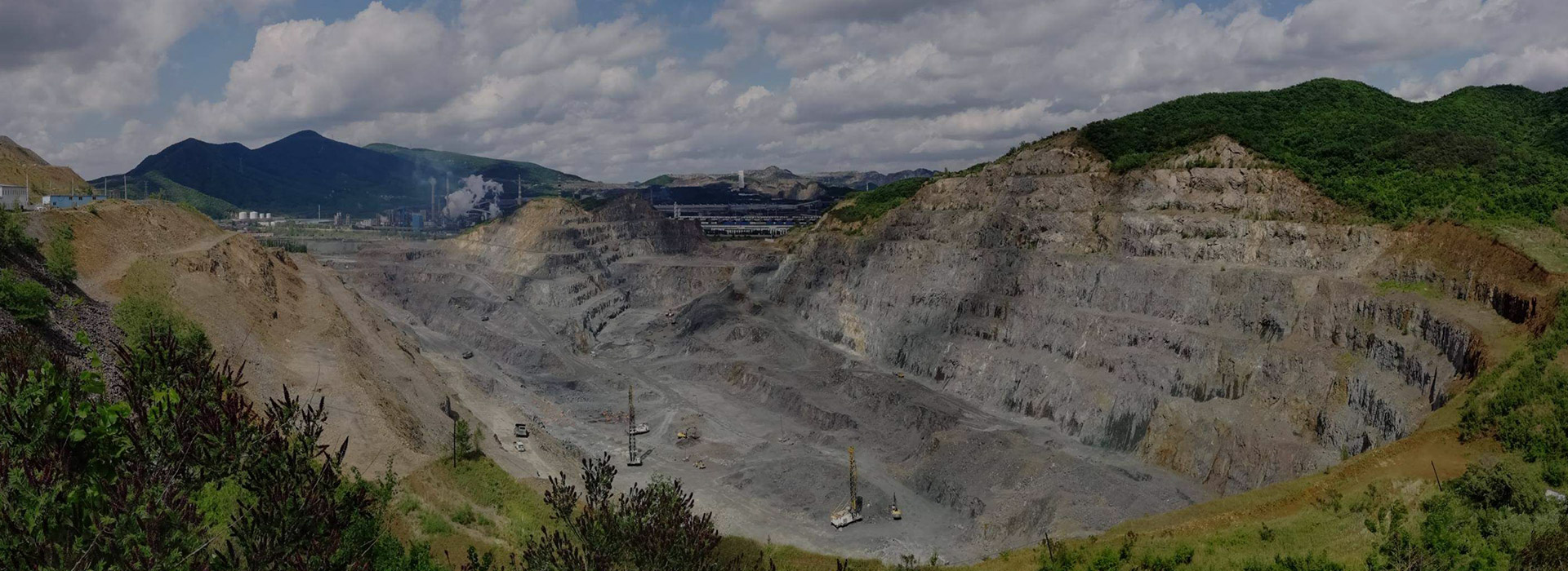 礦料自四周高處開采出來,經(jīng)裝載機(jī)裝載后,由9輛自卸斗重卡運(yùn)送至南部半山腰的的卸貨等待區(qū)